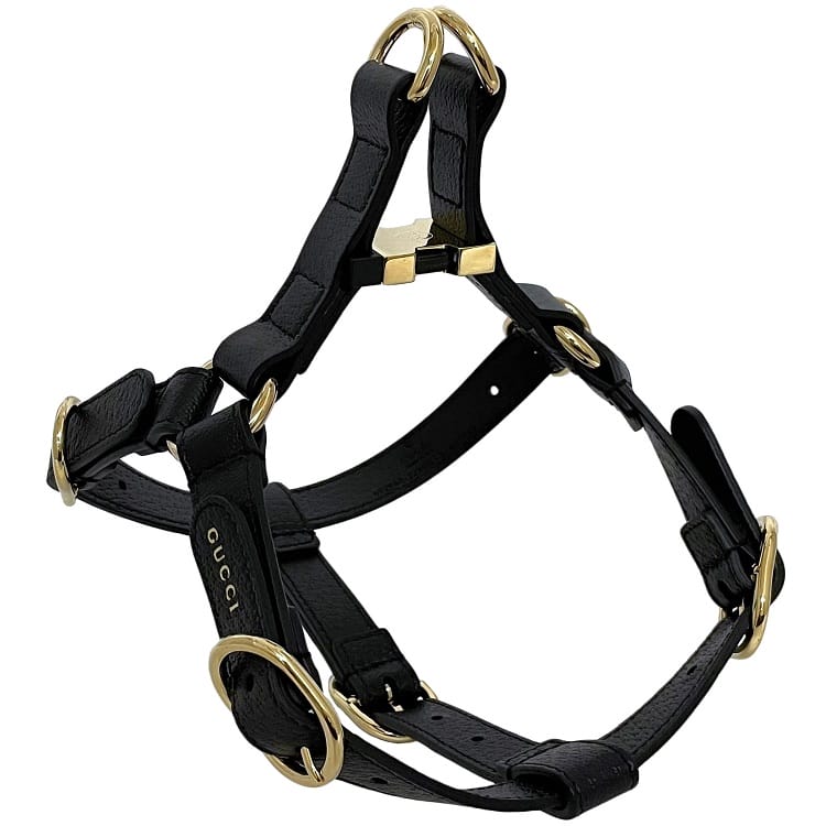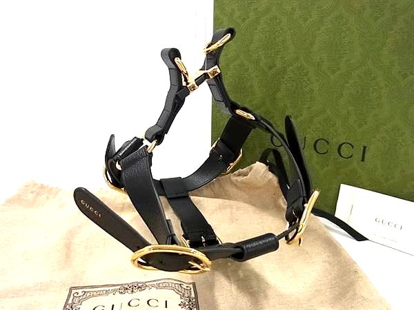 グッチ GUCCI ペット ハーネス 犬用 692963 ブラック ゴールド金具【中古】