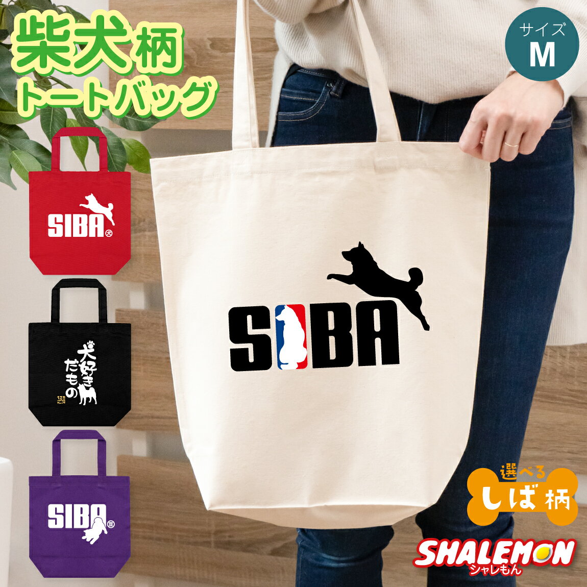 柴犬 犬 アニマル ( 柴犬 選べる デザイン×4色 トートバッグM ) ジャンプ 子供 男性 女性 ペット グッズ ぬいぐるみ 雑貨 ハーネス 服 Tシャツ 犬屋 生地 ドッグフード 面白い 人気 シャレもん しゃれもん