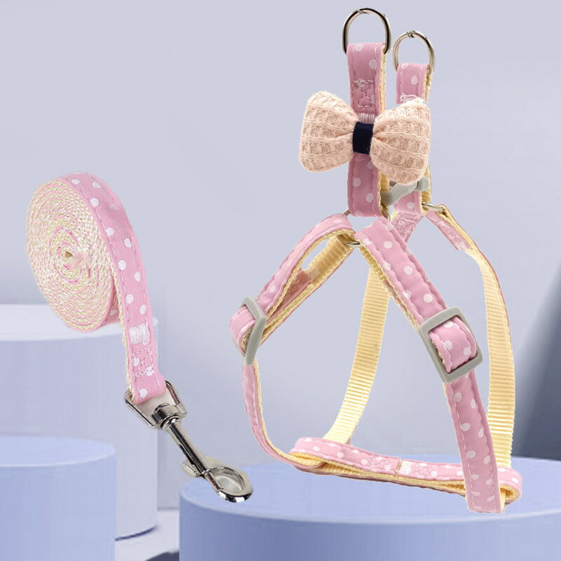 小型犬 牽引ロープ 調節可能 犬用ハーネス 簡単着脱 ペット ハーネス 可愛い 犬用 猫用牽引ロープ 散歩 お出かけ用 ワンちゃん 簡単脱着式ドッグハーネス ペット用品(1ヶ)