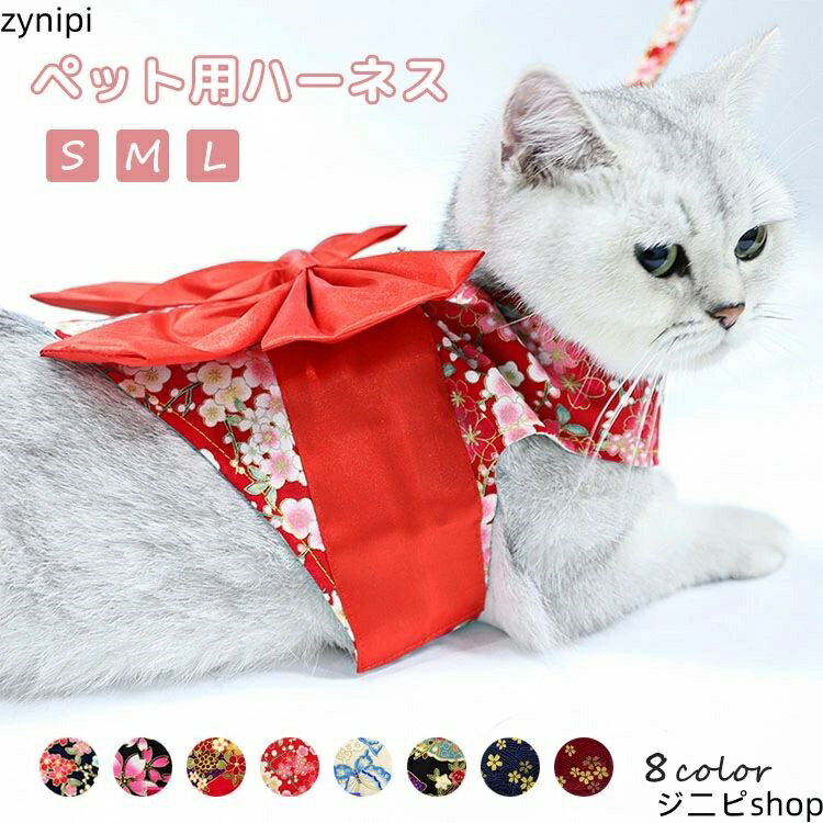 ハーネス ペット服 犬用 猫用 お祭り リボン 花柄 小型犬 中型犬 リード セット おしゃれ 着物 浴衣 可愛い 胴輪 和風 引っ張り防止 華やか リード付き 記念撮影 子犬 お散歩 お出かけ 抜けない ウェアハーネス お正月 晴れ着 お祝い