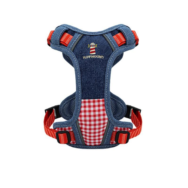 擦れ防止 散歩用 ソフト 抜けにくい デニムカラー 中型犬 伸縮なし ペット用リード 胸当て付き ポリエステル(x5) 丈夫 小型犬 胴輪 犬用ハーネス