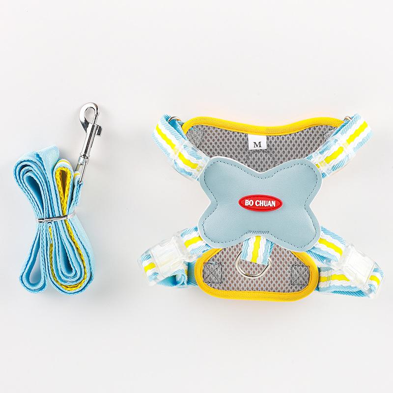 小型犬 イエロー 猫 リード かわいい ブルー(x2) ドッグウェア 犬用ハーネス 綿 胴輪 ベスト 簡単装着 ピンク お出かけ お散歩