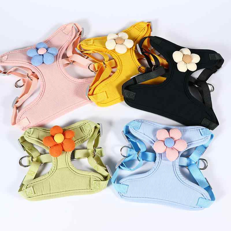 伸縮 立体 お出かけ 猫用 アクセサリー 花柄 青 ナイロン 中型犬 散歩 犬用 胴輪 リード ピンク 緑 リード ハーネス 黄色 小型犬 ペット