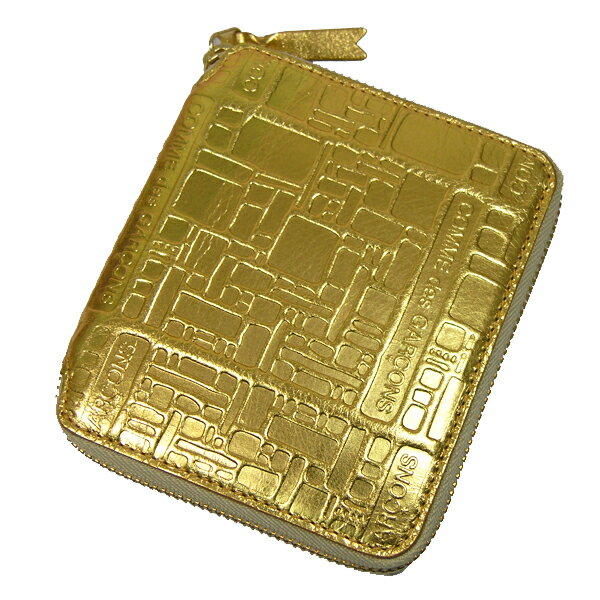 COMME des GARCONS コムデギャルソン SA2100EG GOLD ラウンドファスナー 二つ折り財布 HUGE LOGO