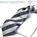 ネクタイ ギフト プレゼント バレンタイン 父の日 卒業式 入学式 就活 仮装 コスプレ HUGO VALENTINO ジャガード TYPE-C-24 シルバー チャコールグレー エンブレム ストライプ柄