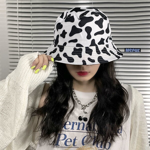 【送料無料】 バケットハット ダルメシアン柄 牛柄 帽子 リバーシブル 白 黒 ダンス 衣装 ヒップホップ コスチューム 韓国ファッション 大きいサイズ 個性的 服 原宿系