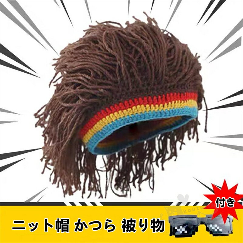 ドレッド 三つ編み 髪の毛 秋冬 防寒 ヘア ウィッグ 付き ニット キャップ ニット帽 かつら 被り物 仮装 ヒップホップ レゲエ ダンサー 髪型 送料無料