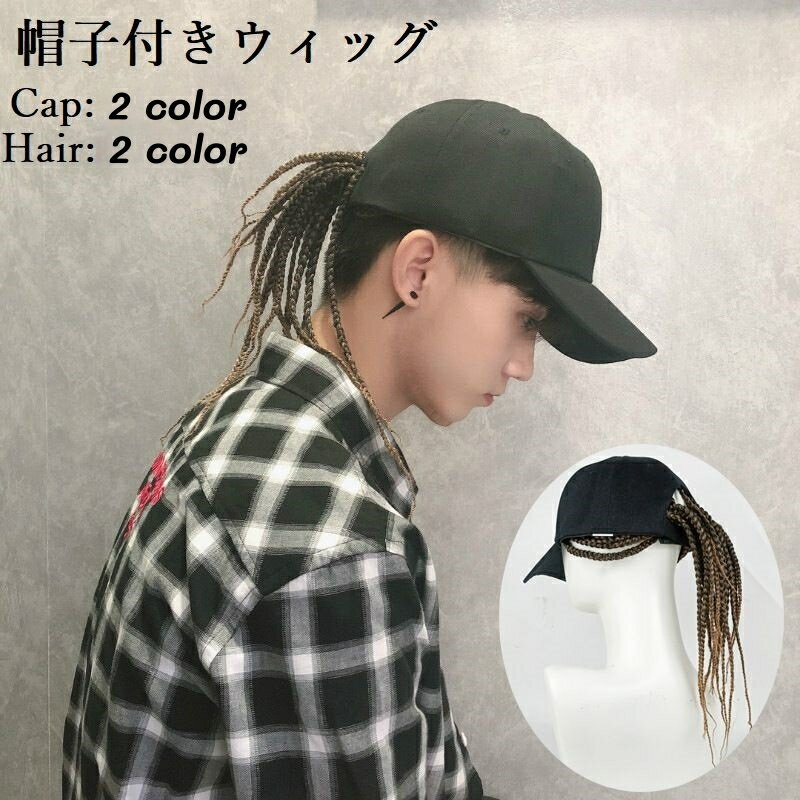 送料無料 帽子付きウィッグ 帽子ウィッグ キャップウィッグ 髪付き帽子 レディース 女性 メンズ 男性 かつら 三つ編み ポニーテール ヒップホップ イメチェン おしゃれ