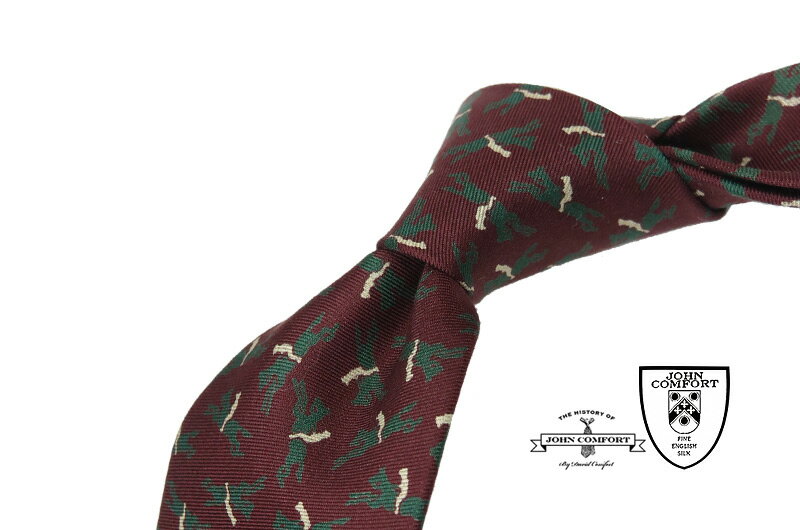 ギフト対応 ★左の画像をクリックすると拡大表示されます。 色 柄 エンジ地にグリーン×オフホワイトのプリント小紋 素 材 SILK 100% JOHN COMFORT ブランドで使用する生地はデザインに合わせて織機、 糸の設定を変える為、英国の歴史あるファクトリーで特別に作られています。 これらの特別に作られた良質な生地を贅沢に使い、 芯地はソフトなウール芯でボリューム感を出しています。 サイズ 大剣幅 : 約7.7cm 生産国 生地原産国 : ENGLAND / 生産国 : MADE IN JAPAN / 日本製 このネクタイは JOHN COMFORT 社製生地を使用し、 フェアファクス・コレクティブで製作された商品です。 ・パソコンの性質上、実際の色と異なる場合がございます。 ・織物のため、若干の織ムラなどがある場合がございます。 ・生地裁断の関係で、柄の位置や色順が画像と違う場合がございます。 ・仕様等が予告無く変更される場合がございます。・紙タグ(紙の下げ札)が付いている場合でも包装時に 紙タグとネクタイが接触しシワや傷の原因になる可能性がある為 紙タグは付属せず、外してお送りいたします。 上記の点を予めご了承の上、ご注文下さい。JOHN COMFORT / ジョン・コンフォート ネクタイ 2016年、「 John Comfort 」 があらためて船出した。 英国で入手可能な最高級素材だけを使用し、伝統的な職人気質を貫くこと。 そして、正統ブリティッシュ・スタイルの中にもインターナショナルな 感性を調和させること。一つは織物。セブンスレッズシルク。 英国の生地は、無骨でガシッとした風合ですが、 伝統ある味わいが感じられます。 それは、英国特有の絹の精錬方式による セブンスレッズシルク ( 7本ヨリ ) を打ち込む事で作り出す味です。 もう一つは、50オンスという超ヘビーなツイルのハンドプリントもしかけます。 この方針のもとに、John Comfort は現代では希少となる、 2つのベーシックな絹素材で他にはない 洗練された最良な英国スタイルを創り出します。 生地原産国 : イギリス / 生産国 : 日本製 このネクタイは JOHN COMFORT 社製生地を使用し、 フェアファクス・コレクティブで製作された商品です。 FAIRFAX / フェアファクス 1976年、東京・青山にて設立。フェアファックスコレクティブのこだわりは、 ブランドであり、商品であり、ひとつひとつに託された、 時代の匂いを含んだ美しいスタイルあります。 ブリティッシュという本質をはずさず、新しい流れを取り入れ、 それを良品質でのみ表現する物作りに対するこだわりを持ったブランドです。 JOHN COMFORT / ジョン・コンフォート 創業者Mr.John Comfort は1879年に生まれる。 1908年、彼はThe Cathedral Knitting Companyをロンドンに設立。 ハンドフレームのニットタイの生産を始める。 1920年に会社名を J. Comfort and Company Ltd. に 改名し、ニットタイの他に織りとプリントのネクタイ、 そしてスカーフやポケットチーフ等が新たに 商品ラインアップに加わる。 1930年代にはハンドブロックでプリントされた エンシェントマダーやレジメンタルストライプ、 さらには Macclesfield ( マックルズフィールド ) 製織物などを クラシックコレクションとして次々に発表していきます。