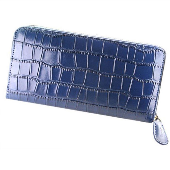 ジョンハリソン 長財布 メンズ 牛革 クロコ型押し ラウンドファスナー付財布 高級 ブランド ブルー J.HARRISON JWT-010BL