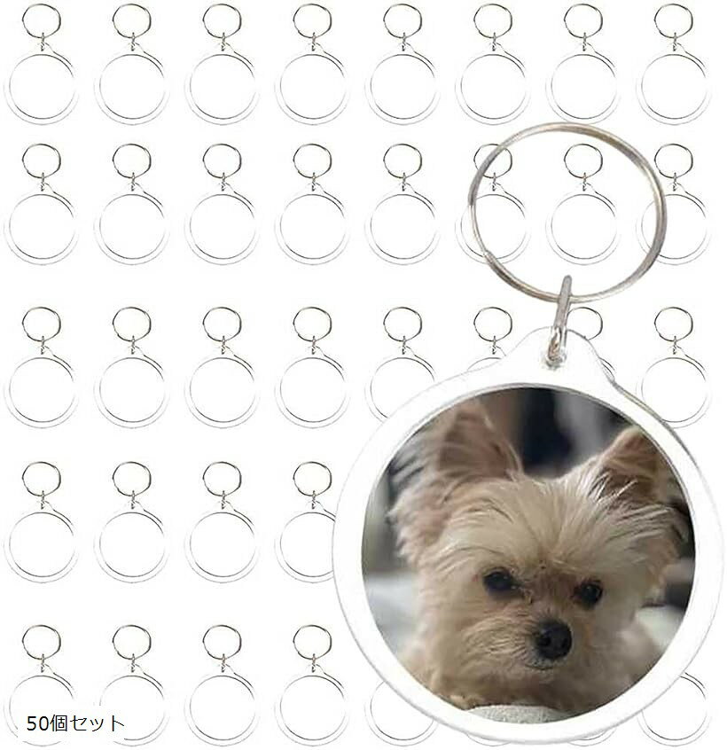 rinda キーホルダー 写真 入れ 丸 丸型 30個 50個 60個 100個 カットテンプレート 台紙付 アクリル フォト フレーム ハンドメイド 手作り パーツ ハメパチ 作成キット (クリア, 50個セット)