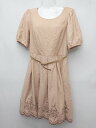 ◇ ⊇ ◎ L'EST ROSE レストローズ 花柄 刺繍 半袖 ミニ丈 ワンピース サイズ2 ベージュ レディース P 【中古】