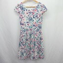 ◇ ⊂ L'est Rose レストローズ 花柄 プリーツ 半袖 ひざ丈 ワンピース サイズMT ホワイト系 レディース E 【中古】