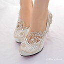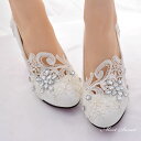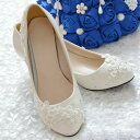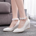 【P5倍★BLACK FRIDAY限定】ウェディングシューズ レディース靴 ウエディングシューズ パンプス ハイヒール 結婚式 花嫁 ブライダル 二次会 パーティー ホワイト レース花 ウェッジヒール