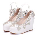【P5倍★BLACK FRIDAY限定】ウェディングシューズ レディース靴 ウエディングシューズ ウェッジソール ハイヒール 結婚式 花嫁 ブライダル 二次会 パーティー 披露宴 ホワイト ビジュー