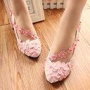 【P5倍★BLACK FRIDAY限定】0.5/3/5/8cmヒール ウェディングシューズ ウエディングシューズ パンプス ハイヒール フラットシューズ 結婚式 花嫁 ブライダル 二次会 パーティー ピンク花
