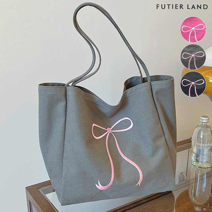 【10%OFFクーポン!2/10(火)1:59まで】futier land すっぽり入る!大容量リボン刺繍キャンバストートバッグ バッグ・鞄