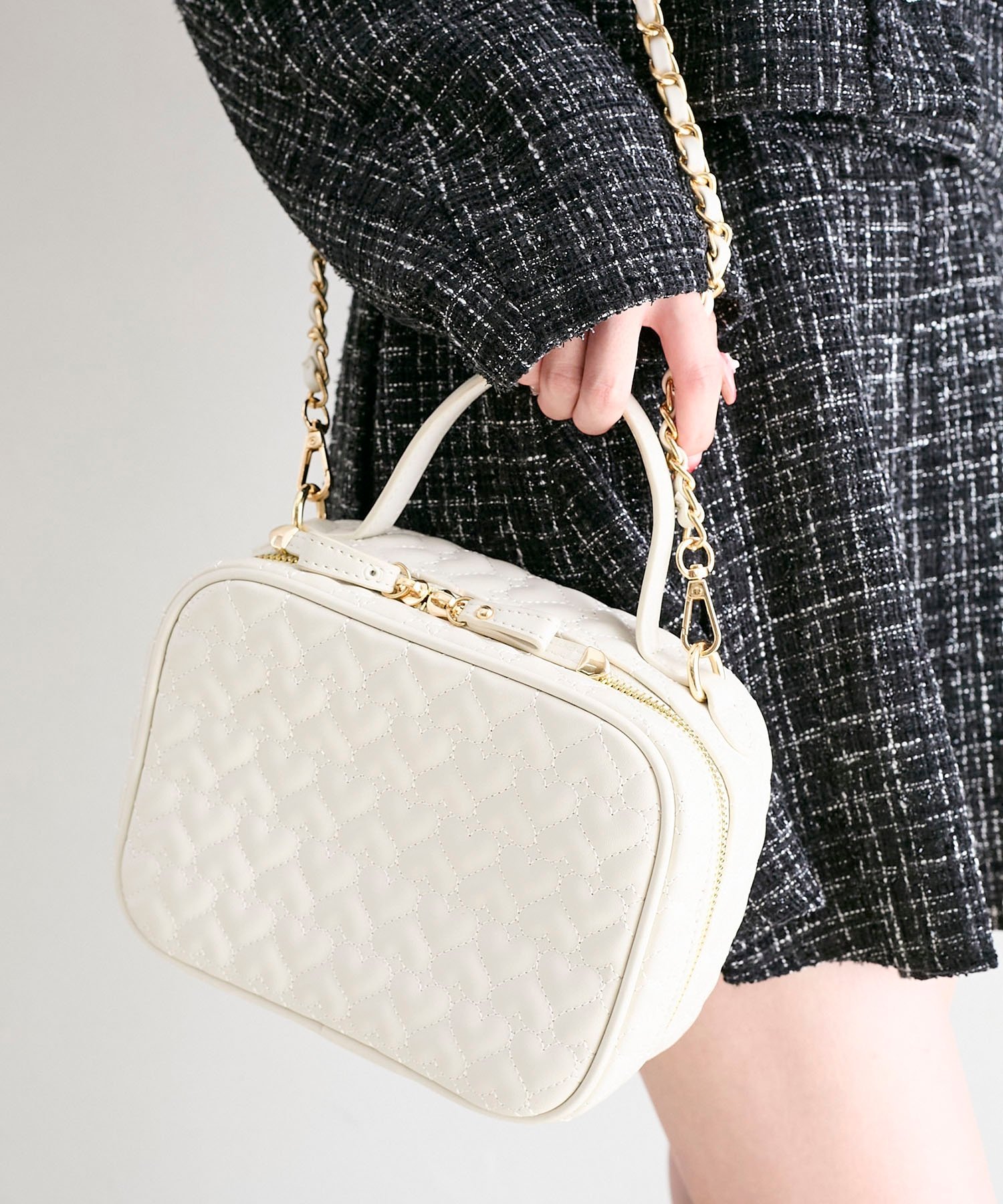 MAJESTIC LEGON(マジェスティックレゴン)ハートキルティングスクエアバッグお客様のお声からリバイバル決定!ハートのキルティングがときめきMAXなチェーンバッグ。■デザインハートのキルティングを全面に施したバッグ。ファスナーが長くつけられているので、大きく開いて荷物の出し入れも楽ちん♪高見えするチェーンショルダーでコーディネートを格上げしてくれること間違いなし◎■サイズ感350mlのペットボトルが入ります。他にも財布やポーチなど十分に収納できます◎■スタイリング思いっきりハートをアピールして推し活やテーマパークにおすすめです♪■商品のお気に入り登録 再入荷通知やのこりわずか、お得なプライスダウンの情報も受け取ることができます。ぜひご登録ください◎※サンプルでの撮影の為、製品と仕様が異なる場合がございます。※商品の色味は、撮影場所や光のあたり具合などにより色味が違って見える場合がございます。また、お客様のお使いのモニター環境などにより色味が異なって見える場合がございます。予めご了承の上ご注文下さい。※こちらの商品はWEB限定販売商品となっております。*摩擦や水濡れによる色落ち・色移りにご注意下さい。型番:105712-6500-03-00 PC7038【採寸】なし/タテ15cm/ヨコ20cm/マチ8cm/持ち手22cm/ショルダーストラップ120cm/重量445g商品のサイズについて【商品詳細】中国製素材:本体/合成皮革 裏地/ポリエステル100%サイズ:なし※画面上と実物では多少色具合が異なって見える場合もございます。ご了承ください。商品のカラーについてMAJESTIC LEGON(マジェスティックレゴン)ハートキルティングスクエアバッグお客様のお声からリバイバル決定!ハートのキルティングがときめきMAXなチェーンバッグ。■デザインハートのキルティングを全面に施したバッグ。ファスナーが長くつけられているので、大きく開いて荷物の出し入れも楽ちん♪高見えするチェーンショルダーでコーディネートを格上げしてくれること間違いなし◎■サイズ感350mlのペットボトルが入ります。他にも財布やポーチなど十分に収納できます◎■スタイリング思いっきりハートをアピールして推し活やテーマパークにおすすめです♪■商品のお気に入り登録 再入荷通知やのこりわずか、お得なプライスダウンの情報も受け取ることができます。ぜひご登録ください◎※サンプルでの撮影の為、製品と仕様が異なる場合がございます。※商品の色味は、撮影場所や光のあたり具合などにより色味が違って見える場合がございます。また、お客様のお使いのモニター環境などにより色味が異なって見える場合がございます。予めご了承の上ご注文下さい。※こちらの商品はWEB限定販売商品となっております。*摩擦や水濡れによる色落ち・色移りにご注意下さい。型番:105712-6500-03-00 PC7038【採寸】なし/タテ15cm/ヨコ20cm/マチ8cm/持ち手22cm/ショルダーストラップ120cm/重量445g商品のサイズについて【商品詳細】中国製素材:本体/合成皮革 裏地/ポリエステル100%サイズ:なし※画面上と実物では多少色具合が異なって見える場合もございます。ご了承ください。商品のカラーについて