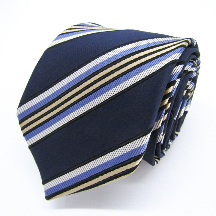 ミツミネ ブランド ネクタイ ストライプ柄 マルチストライプ シルク 日本製 PO メンズ ネイビー MITSUMINE 【中古】