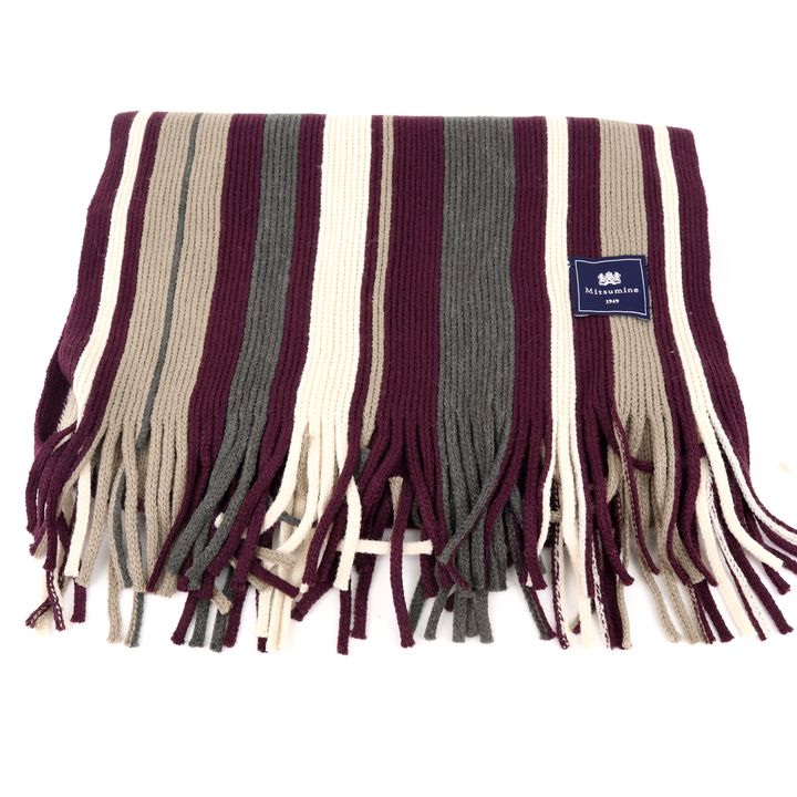 【全品39%OFFクーポン配布中】ミツミネ マフラー ストライプ柄 フリンジ ブランド 小物 メンズ パープル Mitsumine 【中古】