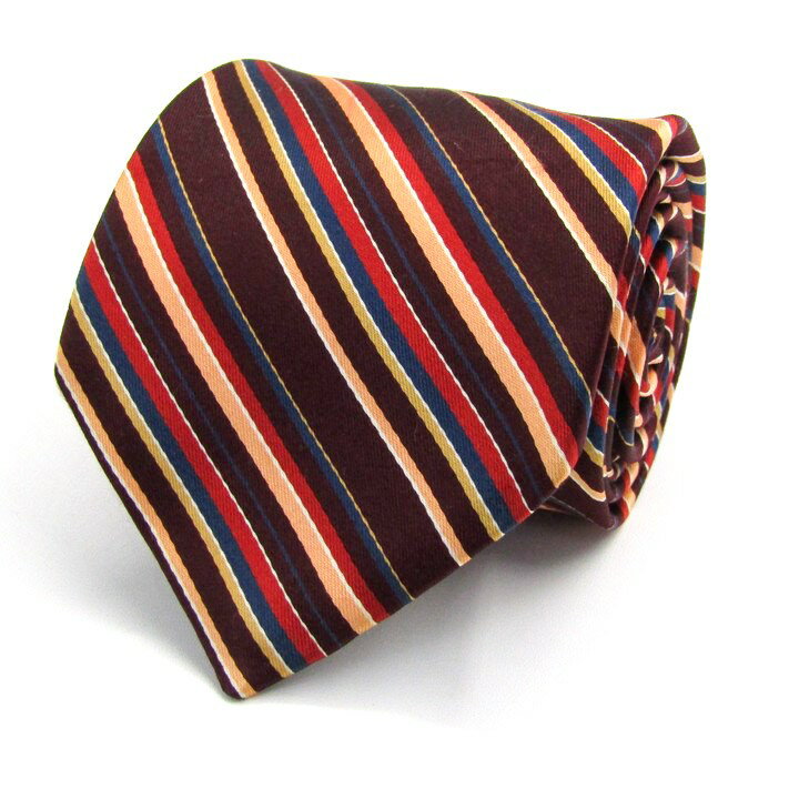 ミツミネ ブランド ネクタイ ストライプ柄 マルチカラー シルク 日本製 PO メンズ ブラウン MITSUMINE 【中古】