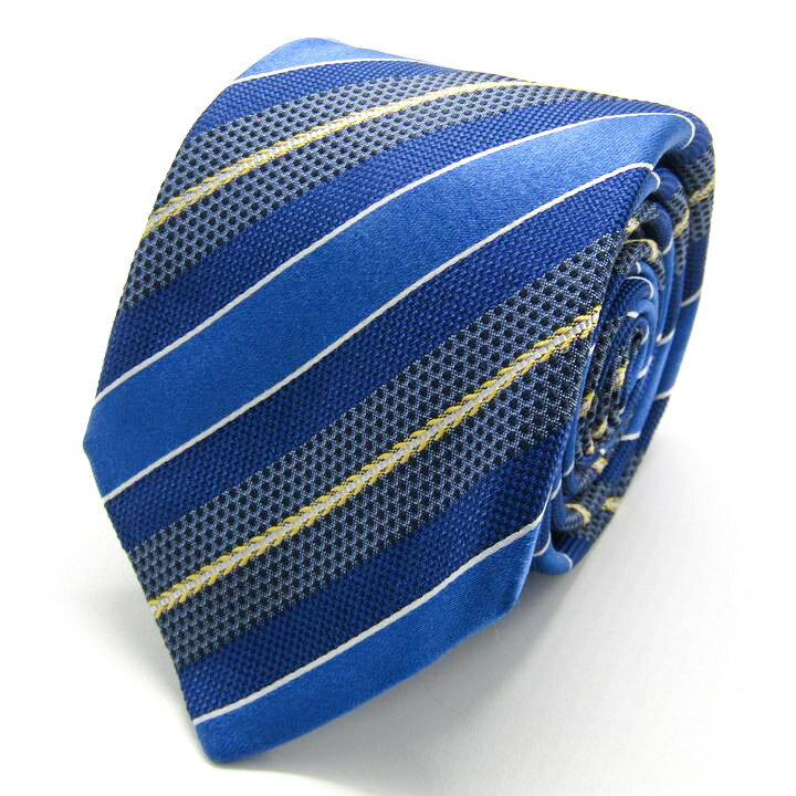 美品【FRANCO BASSI×MITSUMINE フランコバッシ×ミツミネ】レジメン柄♪シルク ネクタイ(メンズ) 青みのあるネイビー系 伊製 ◇17MM8504◇ 【中古】