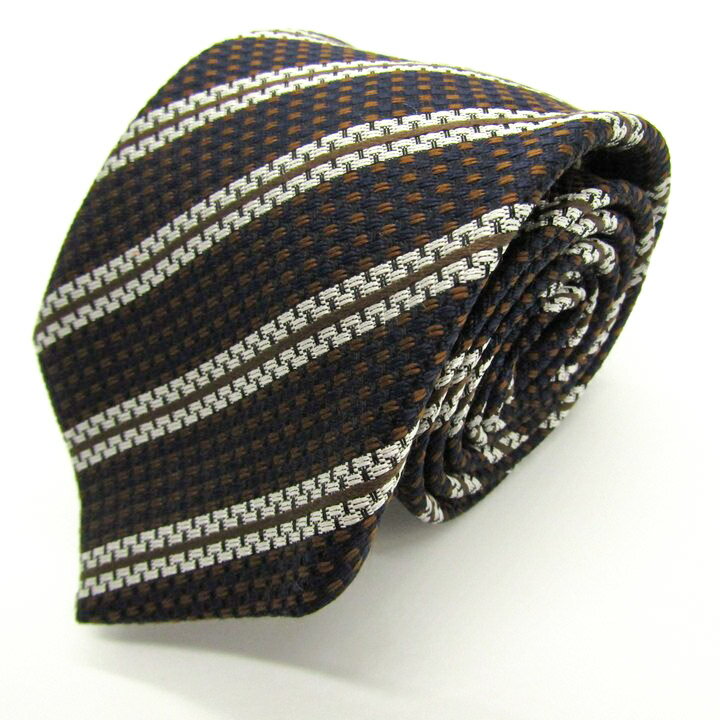 【全品39%OFFクーポン配布中】ミツミネ ブランドネクタイ ストライプ柄 シルク ウール 日本製 メンズ ブラウン Mitsumine 【中古】
