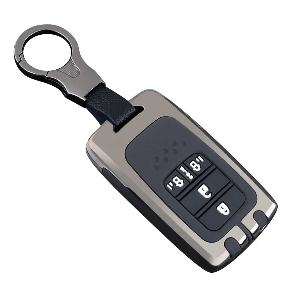 ホンダ 車用 キーケース スマートキーケース キーカバー 亜鉛合金 シリコン 全面保護 HONDA 両側スライド ODYSSEY オデッセイ RC1 ステップワゴン オデッセイハイブリッド フリード 等に適用 キーケース 4ボタン(グレー)