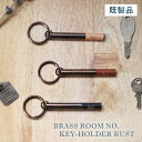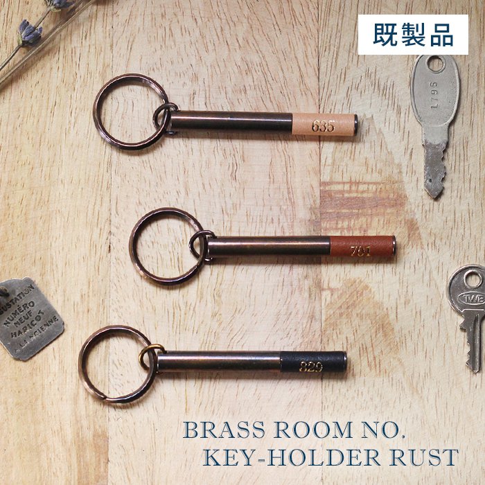 PICUS ブラス ルームナンバー キーホルダー 既製品タイプ 錆 スティック ブラウン色 真鍮 革 BR-RM02-R