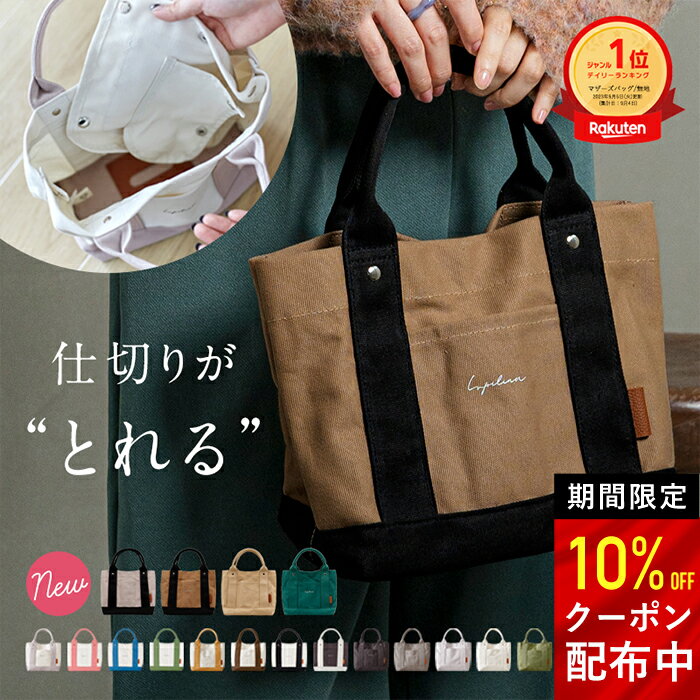 【 10%OFFクーポン 】高評価★4.58【 楽天ランキング1位 】【 仕切りが取れる! 】Lupilina(R)公式 トートバッグ レディース ミニトートバッグ キャンバス 丁寧縫製 見た目以上の収納力自立 マグネットで閉まる ICカード 柊 マザーズバッグ 母の日