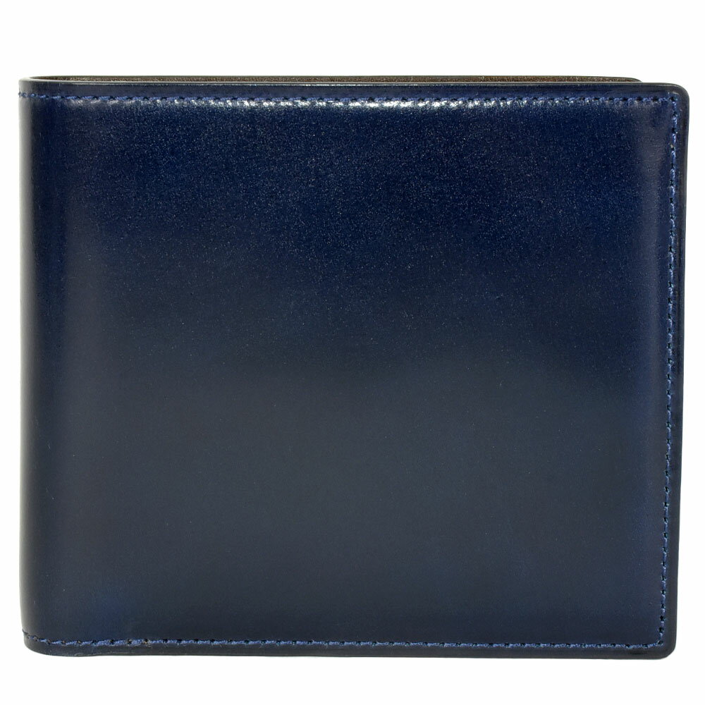 プレリー PRARE 二つ折り財布 コードバン 牛革 ブルー レザー 小銭入れ付き メンズ【中古】