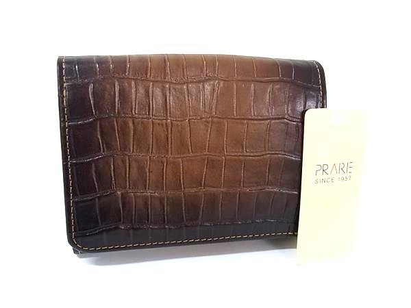 ■新品■未使用■ PRARE プレリー クロコダイル型押しレザー 二つ折り 長財布 ウォレット 札入れ カード入れ ブラウン系 BK7688