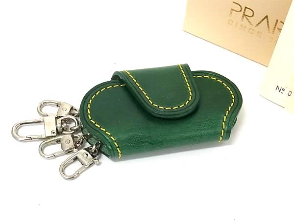 ■美品■ PRARE プレリー レザー 4連 キーケース 鍵入れ メンズ レディース グリーン系 DJ5495