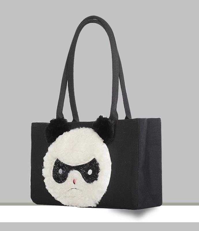 カバン レディース ハンドバッグ 刺繍 ふわふわ パンダ ショルダー カジュアル シンプル かわいい キャンバス ジッパー 黒 柔らかい 韓国