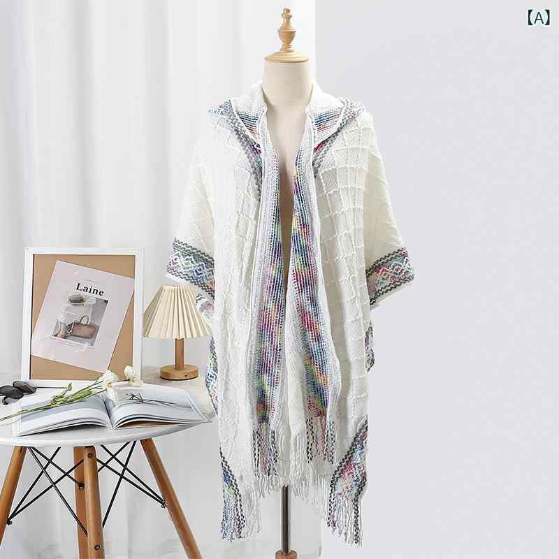 ポンチョ レディース フード付き ショール ストール ケープ カジュアル 普段使い 着回し 個性的 縁取り地模様 シンプル おしゃれ カシミヤ調 フリンジ 大判 保温 防寒 通気性 レトロ エスニック 秋冬春