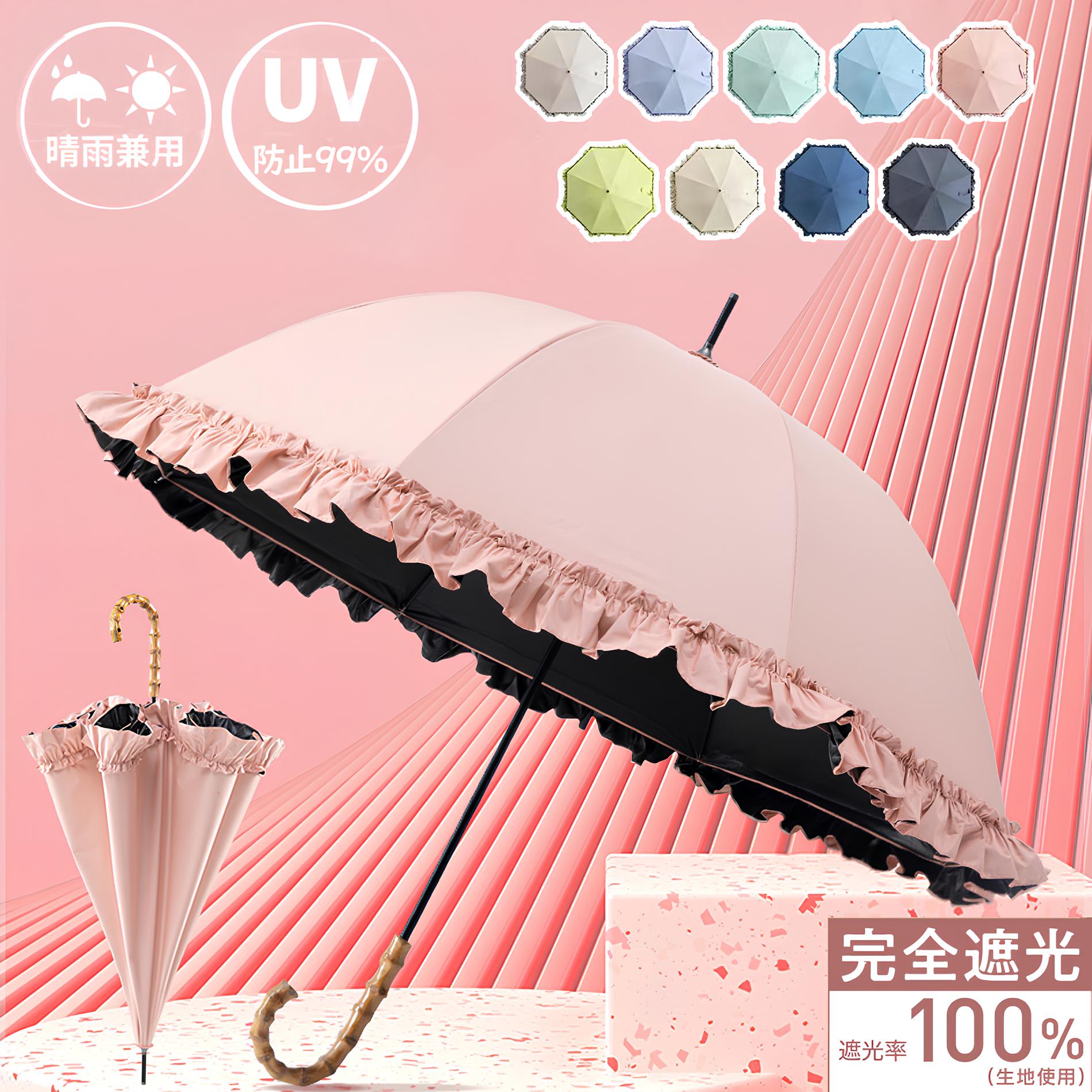 最強の日傘 長柄傘 完全遮光 レディース傘 晴雨兼用 フリル 花柄 軽量 女性 2WAY 8本骨 紫外線対策 日焼け対策 完全UVカット100%生地ギフト対象傘 レディース 晴雨兼用紫外線 熱中症 防止 対策ネッククーラー パナソニッククリップファン 冷却 パナソニックパナソ