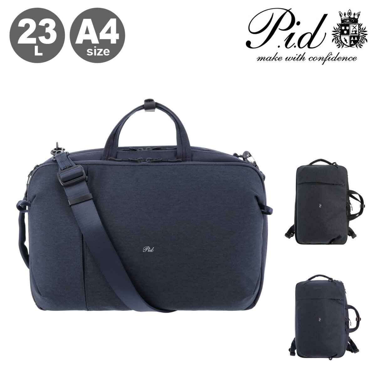 ピーアイディ リュック A4 3Way メンズ PAU303 PID ショルダーバッグ 手持ち ビジネスリュック 新生活 大容量 通勤 23L