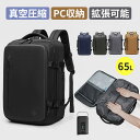 【スーパーSALE限定★】圧縮 リュック ポンプ付き エア真空 バックパック メンズ 17インチPC対応 ビジネスバッグ 大容量 多機能 乾湿分離 キャリーオン機能 通勤 通学 出張 旅行 多層ポケット 65L 拡張可能