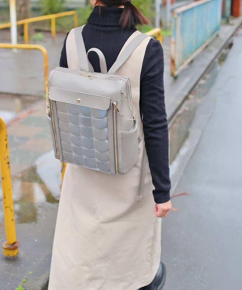 【縦型隠せる痛リュックサック】color→ BLACK /NAVY /WINE /GREIGE /OFFWHITE 前面のビニール面(缶バッジ等を収納する部分)をサイドファスナーで脱着回転して普段にも使用できる機能を付属した痛土台リュックです。☆移動の時やお仕事からの推し事も気にせず使用できるクルア仕様☆☆隠れて推し活の方にも痛バ初心者の方にもオススメです☆型崩れしないよう、高級感のあるしっかりとしたPU素材を使用しておりますっ♪※PC、スマートフォン等のモニターの設定により、実際の色味と異なる場合がありますこと、ご了承ください。※缶バッジを刺すシートは付属しておりません。※画像はsampleのため仕様に変更、サイズ感微調整がある場合があります。ご了承宜しくお願い致します。※合成皮革は、他の素材と密着すると色が移行する可能性がございます。素材の性質上避けることができませんので、予めご了承ください。※意匠権登録済SIZE 約 W27 H33 D10ビニール面積 約 W18.5 H24MATERIAL PU(合成皮革)■カラー:ブラック、ネイビー、ワイン、グレージュ、ホワイト※( )で表記されている数字はヌードサイズです。ヌードサイズとは衣服を身につけない身体のサイズです。お客様ご自身の身体サイズと比較してお選びください。 ■素材: 合成皮革 ■お手入: 水分が付着した場合は乾いた布等でふき取ってください >>商品のお取り扱い方法 ■原産国:クルア 回転式 縦型隠せる痛リュック /リアレア(REA RARE)ブラックネイビーワイングレージュホワイト画面上と実物では、多少色具合が異なって見える場合がございます。