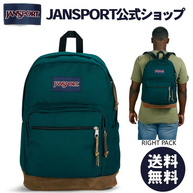 【公式】JANSPORT リュック ジャンスポーツ RIGHT PACK - DEEP JUNIPER - JS0A4QVA7F7 ライトパック ジャンスポ グリーン 緑 GREEN バックパック リュックサック 通勤 通学 学生 高校生 大学生 社会人 旅行 レザー コーデュラ メンズ レディース 28L