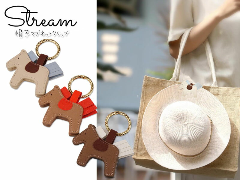 強力なマグネットで挟み込むラクラクの帽子クリップバックルはカラビナ仕様で取り外しも簡単。 大きなハットやキャップ等、カバンに入れずにらくらく持ち運び!! カバンの持ち手やハンガー・フックに引っ掛ける事ができるので携帯・保管・収納に便利なアイテムです。 ハットクリップをバックに付けて、ツバやバイザー部分を磁石の間に挟み込むだけ。フェイクレザーを使用、カバンの持ち手等につけてバックチャームとして付けておく事も出来る優れもの。 帽子に限らず、手袋やアームカバー等 紛失しそうな小物を留める事も出来るのでオールシーズン活用でき 簡単なギフトにも最適です。 サイズ:縦約7.5cm×横約9cm(全長約10.5cm)