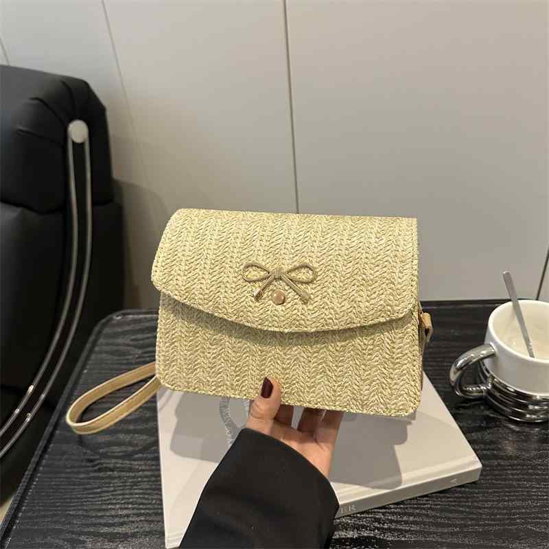 レディースバッグ ストロー素材 編み込みデザイン カジュアル ショルダーバッグ ハンドバッグ 斜めがけ 肩掛け マグネット開閉 ファスナーポケット付き 横型 スクエア型 ミドルサイズ 大人きれいめ 春夏 ホワイト カーキ