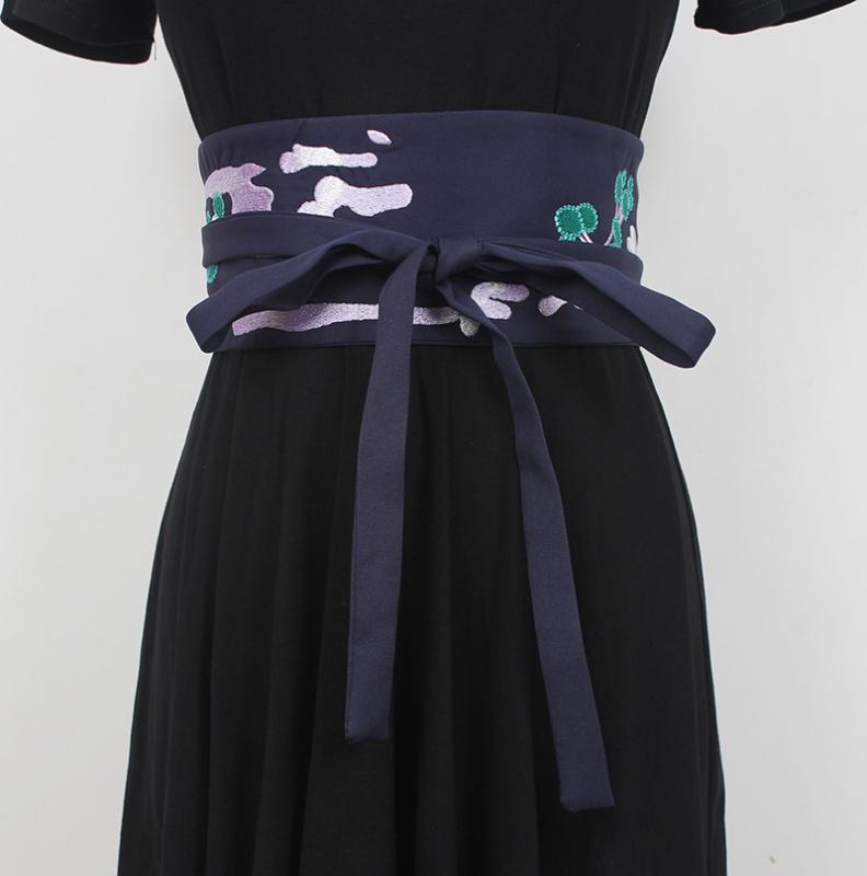 サッシュベルト 男女兼用 刺繡 花柄 民族調 和柄 古風 漢服 衣装 ウエストマーク 結び紐 フォーマル イベント コスプレ レッド ブラック 紺色 ベージュ