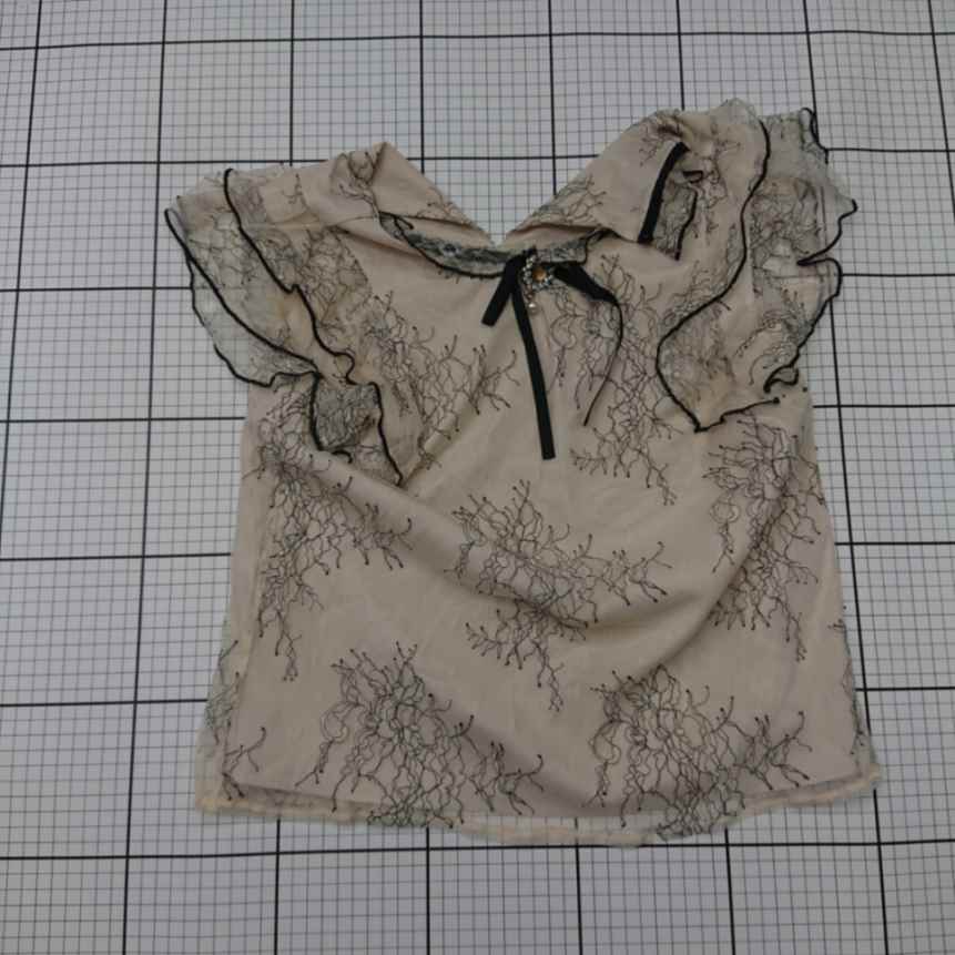 ◇ ⊂ ROJITA レースフリルトップス ベージュ系×ブラック系 Fサイズ レディース E 【中古】