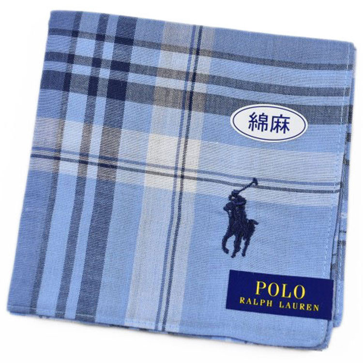 ポロ ラルフローレン ハンカチ 1枚 メンズ 綿麻 ブランド ハイブランド POLO Ralph Lauren 青 ブルー チェック ロゴ 刺繍 男性 紳士 父の日 実用的 20代 30代 40代 50代 60代 70代 プレゼント ギフト おしゃれ ポイント消化