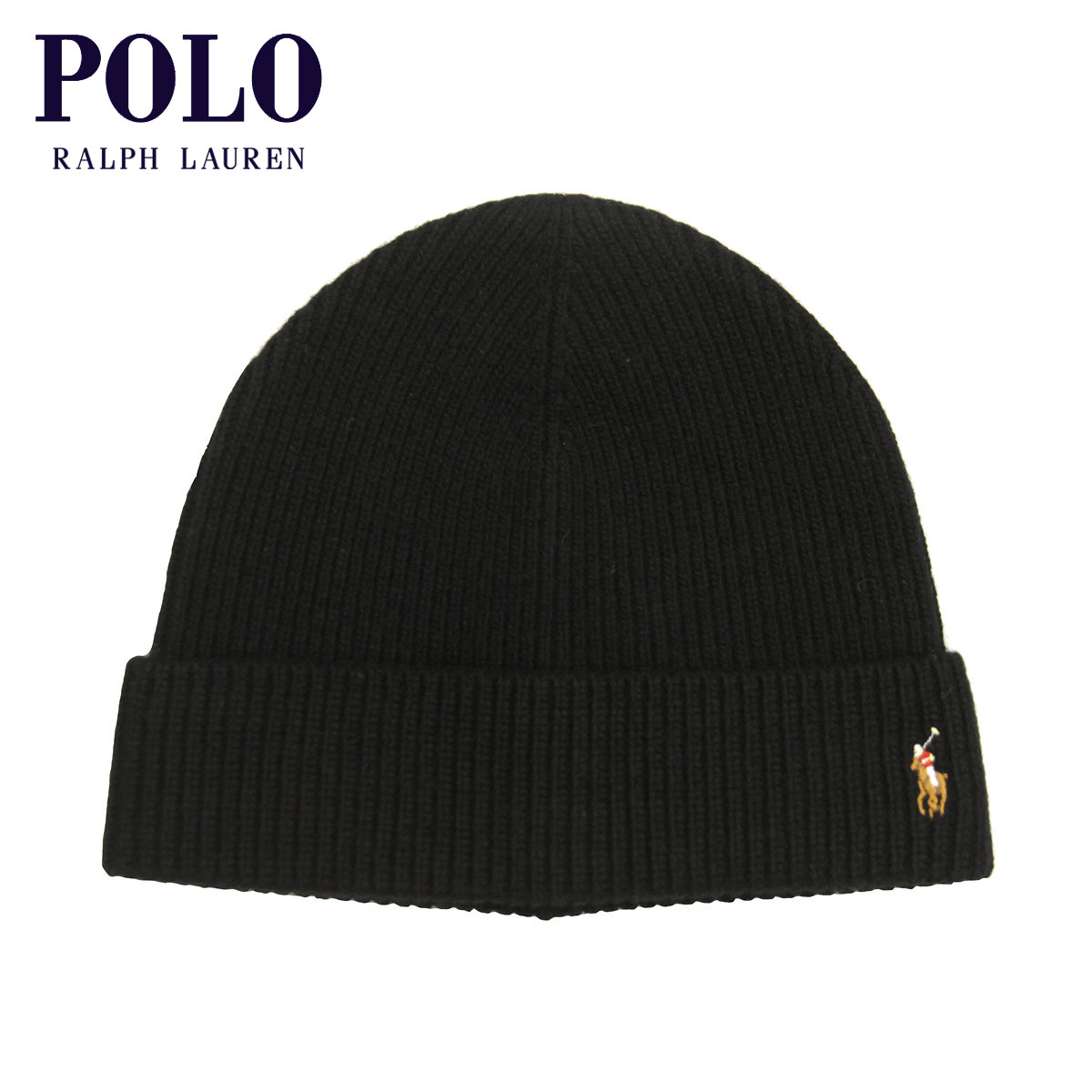 【ポイント10倍 11/20 20:00〜11/27 1:59】 ポロ ラルフローレン 帽子 メンズ レディース 正規品 POLO RALPH LAUREN ビーニー ニットキャップ SIGNATURE CUFF HAT PC0483 002 POLO BLACK