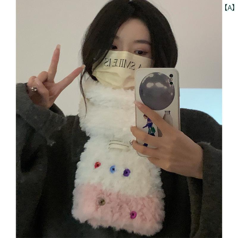 マフラー レディース おしゃれ 冬 ふわふわ 毛長 もこもこ かわいい ボタン 韓国 学生 プレゼント
