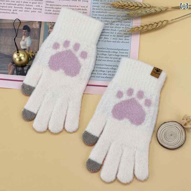 レディース グローブ 秋冬 触屏対応 猫爪 防寒 保暖 サイクリング用 ウールニット 厚手 フリースライニング 伸縮性 吸湿速乾・カテゴリ: 保暖手袋・スタイル: 分指手袋・主な素材: ポリエステル・カラー展開: 米白色.卡其色.粉红色.上青.薫衣草紫.深卡其色.白.米黄・サイズ展開: フリーサイズ・機能: 防滑.触屏.保暖.防風