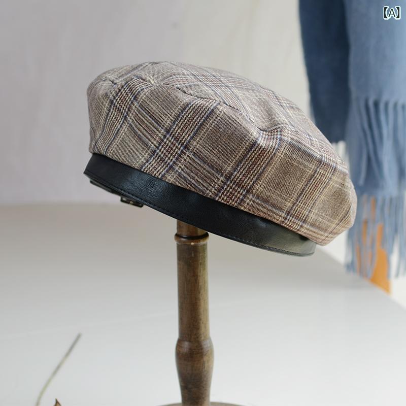 レディース ベレー 帽 秋 チェック 帽子 秋冬 韓国 レトロ 画家帽子 英国 画家帽子