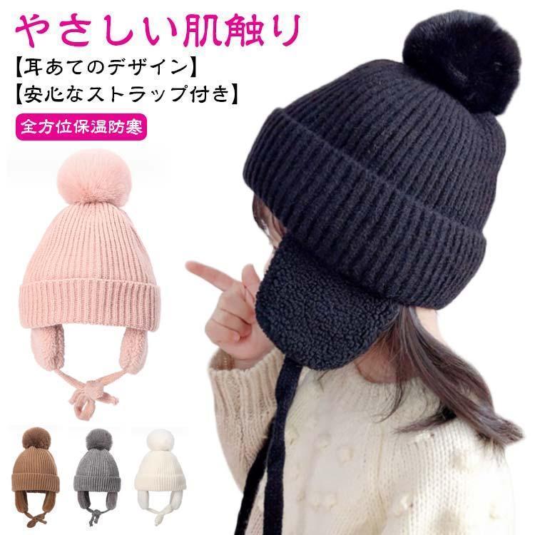 ニット帽 ベビー キッズ 男の子 女の子 冬用 裏起毛 フリース裏地 防寒 耳あて付き 綿素材 やわらかい あったか 通園 お出かけ 48-50cm対応